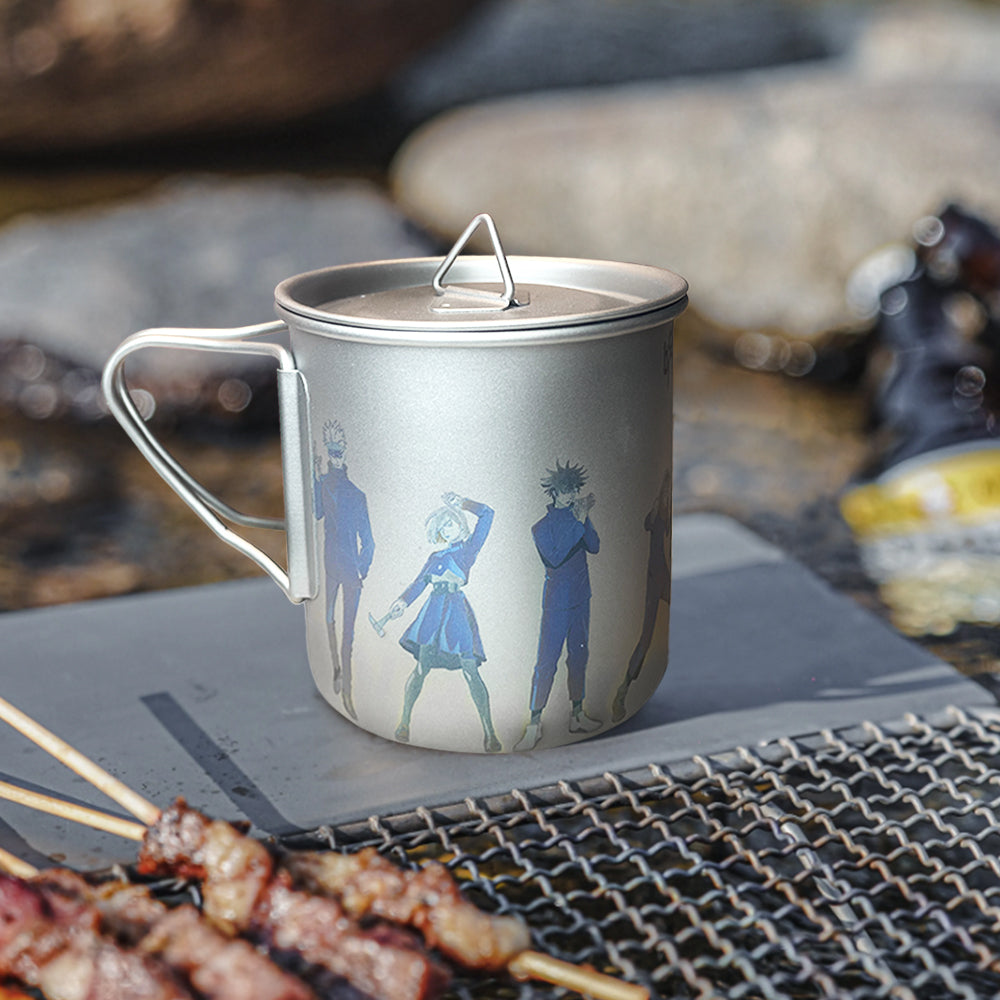 EtchStudio 420ml Pure Titanium Mug with Lid – Jujutsu Kaisen Theme, Ultralight, Durable, with Mesh Bag